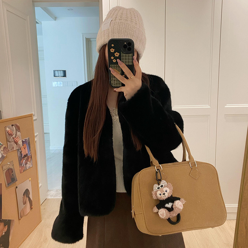 小香风仿水貂皮毛一体短款外套券后价¥99米柚家女装 5 分前