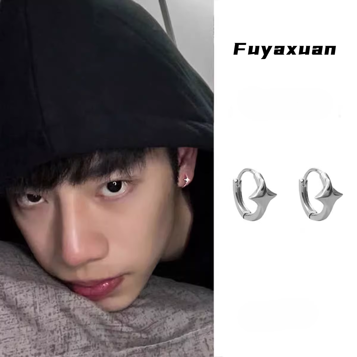 天猫福雅轩家居旗舰店,男款设计感925耳钉男士简约耳环酷养耳洞耳扣耳圈高级感男生耳饰