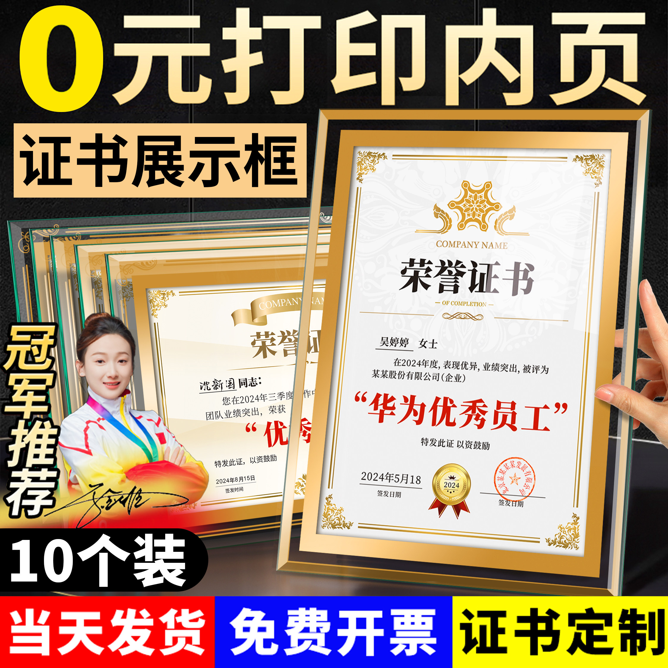 天猫眼镜猴旗舰店,荣誉证书奖状定制授权聘书展示框,免费打印内页 免费开票 当天发货