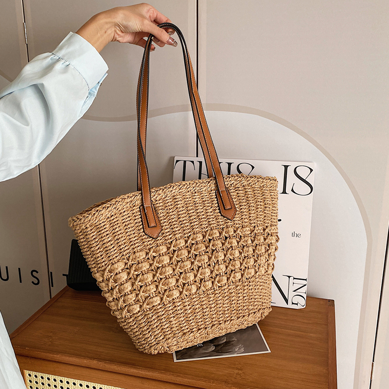 淘宝卖包的杨雪球,夏天大容量草编包女时尚法式镂空编织菜篮子包藤编度假沙滩水桶包