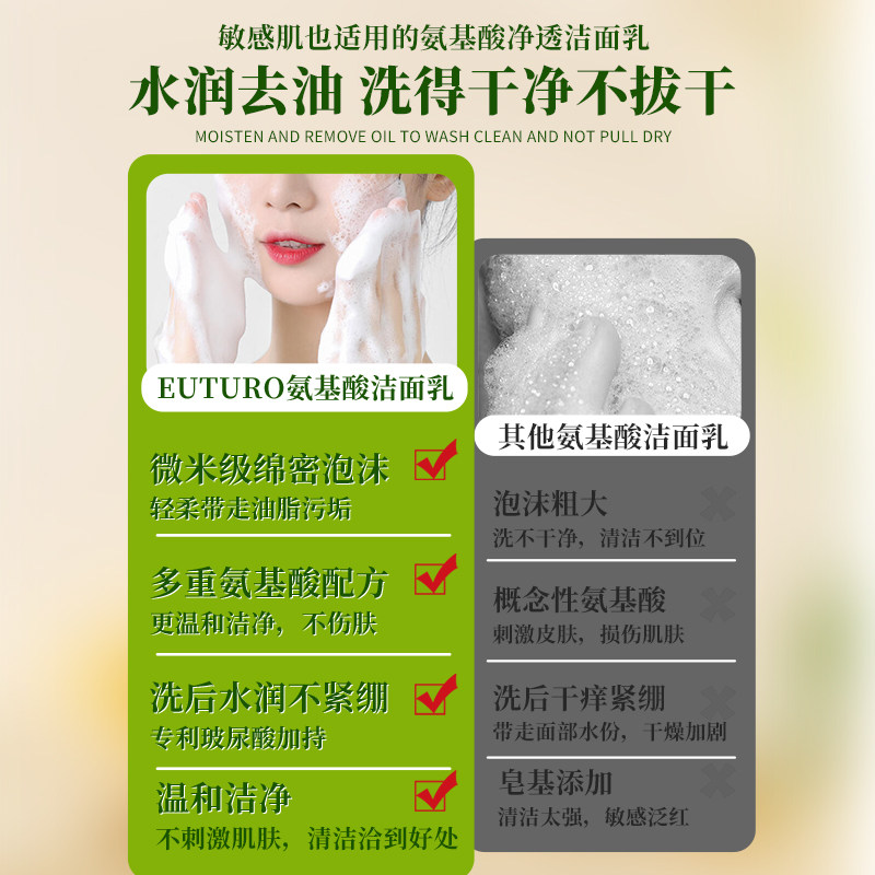 天猫EUTURO妮婕专卖店,英国EUTURO氨基酸臻颜净透洁面乳除螨控油深层清洁洗面奶男女5