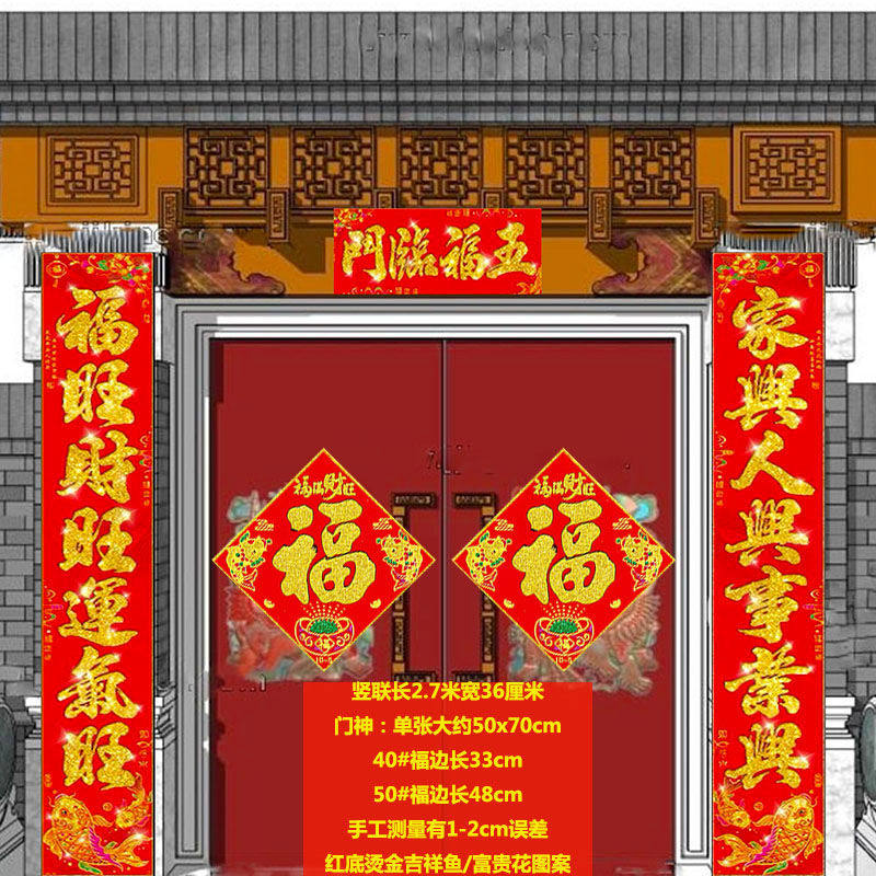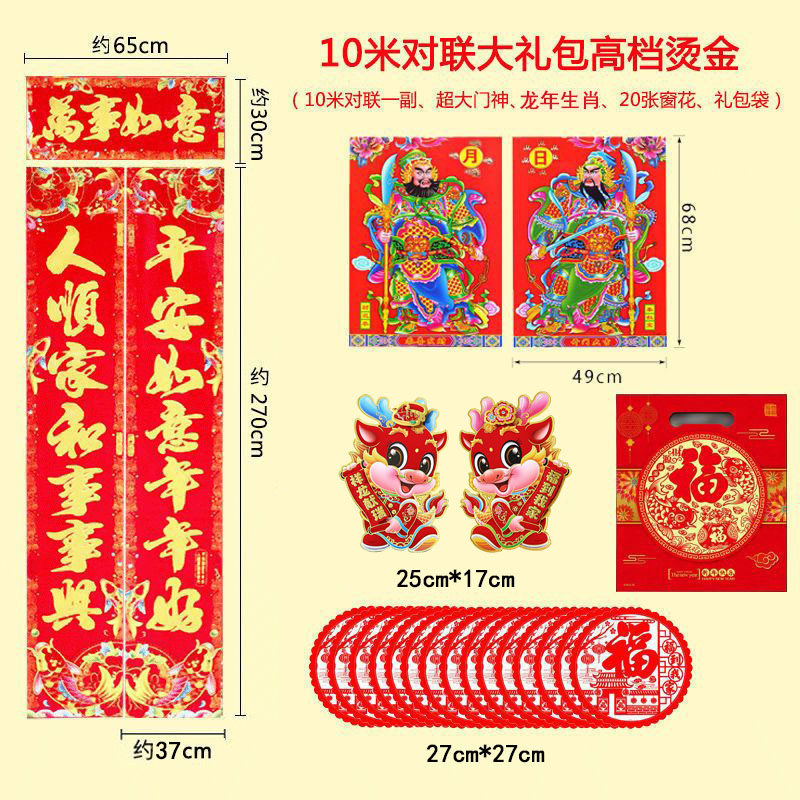 龙年8米10米特大对联烫金福字农村大门别墅高档春联礼包物业工厂