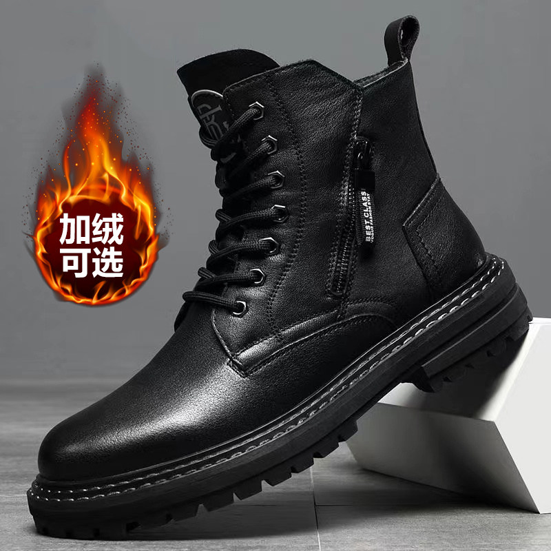 淘宝啄木鸟品牌折扣,马丁靴男百搭加绒保暖真皮雪地靴