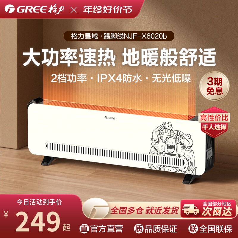 天猫格力生活电器旗舰店,格力踢脚线家用节能全屋客厅暖风机,IPX4防水 居浴两用 节省空间