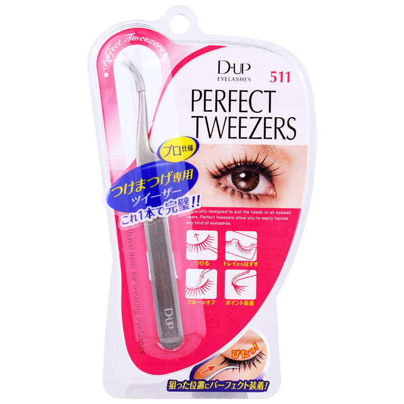 日本进口 D-UP钢制尖头dup511弯头假睫毛辅助镊子 假睫毛佩戴