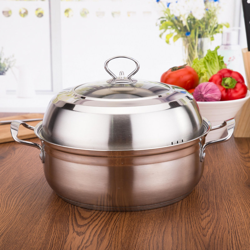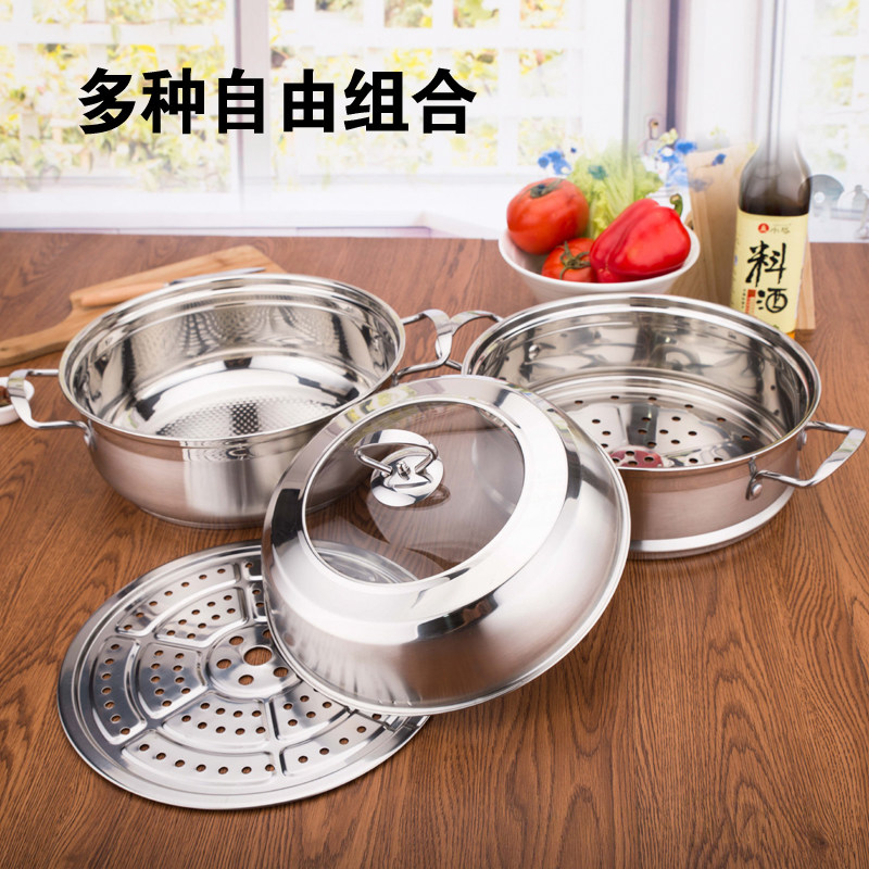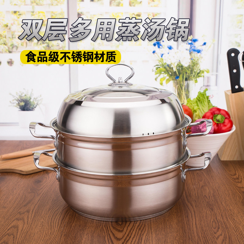 包邮蒸锅不锈钢家用双层二层蒸笼电磁炉通用加厚复底26cm28cm蒸锅