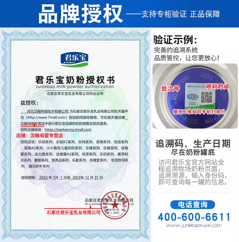 天猫汉翰母婴专营店,君乐宝乐铂K24段儿童奶粉,低于99/罐不送大礼 4段奶粉不参与试喝活动