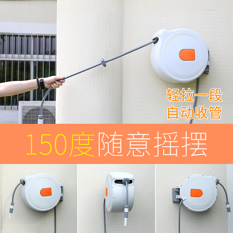 天猫晨佑行车品专营店,【自动回收伸缩】收纳架洗车水枪,120度摇摆 自动收缩水管 省时省力