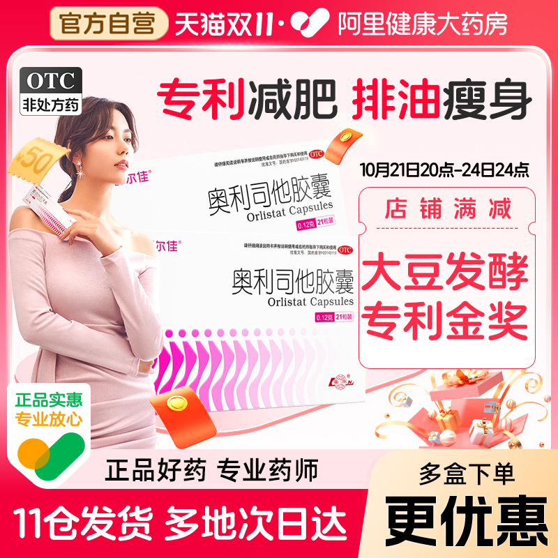 天猫阿里健康大药房,【舒尔佳】奥利司他胶囊120mg*7粒/盒减肥减脂专治肥胖,排油减肥瘦身 随餐一粒抗肥胖