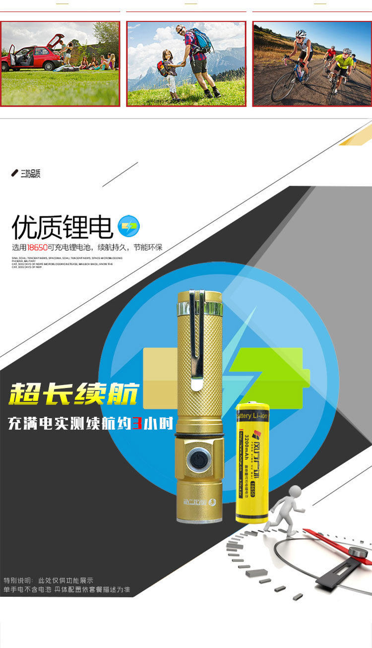 淘宝大功率LED灯具配件,迷你18650充电强光金色中间开关