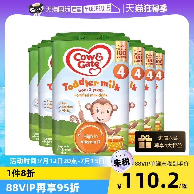 天猫国际自营进口超市,【自营】英国牛栏Cow&Gate进口幼儿奶粉4段宝宝成长乳粉800g*6罐