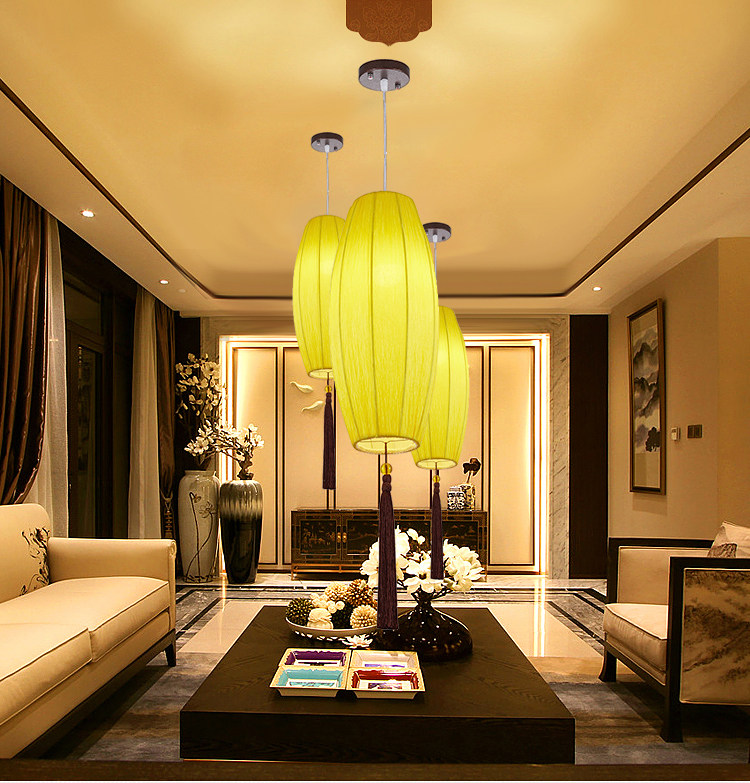 淘宝祥光胜意灯饰厂,新中式布艺橄榄灯创意餐厅吊灯