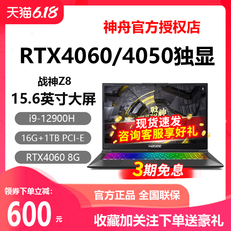 淘宝神舟电脑店,神舟G8i9战神RTX4060游戏本电脑