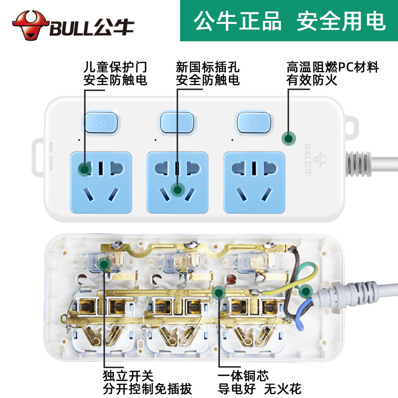淘宝公牛数码自营店,公牛面板家用多功能多孔插排插线板