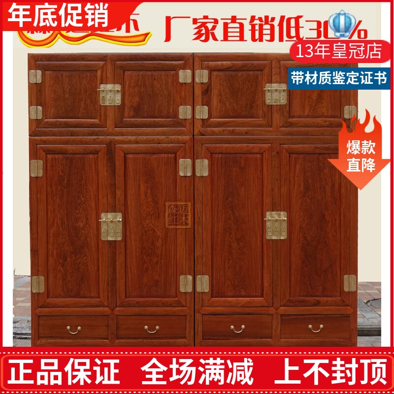 缅甸花梨红木顶箱柜大果紫檀花梨木红木雕花衣柜现代衣柜加厚独板