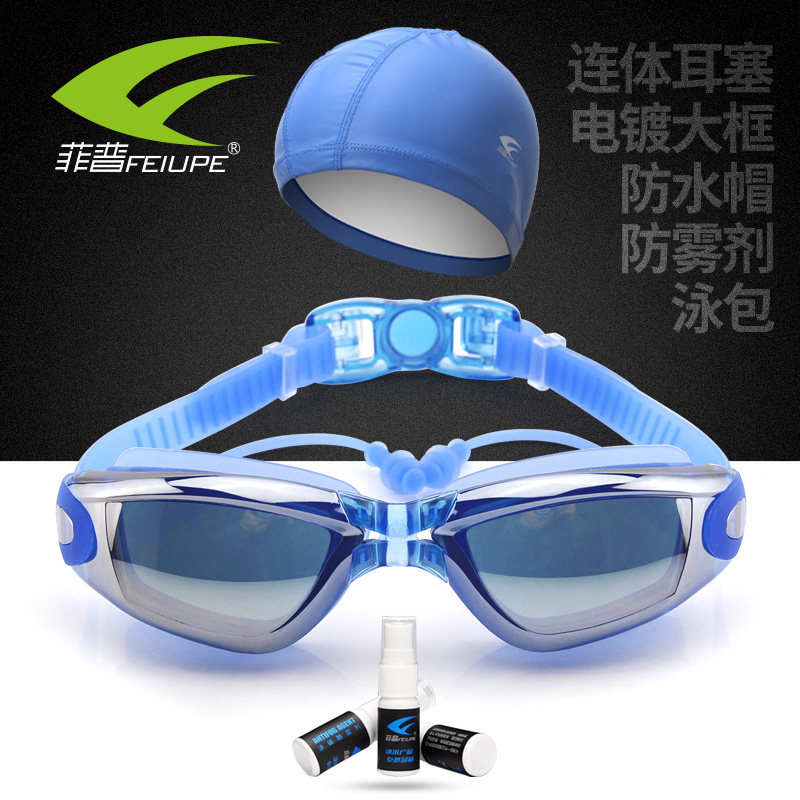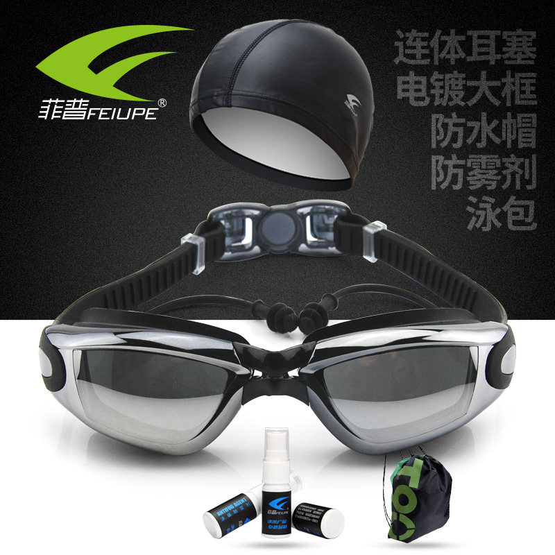 天猫菲普运动专营店,菲普带耳塞近视泳镜泳帽游泳眼镜,组合套装 连体耳塞镜 泳帽 防雾剂 泳包