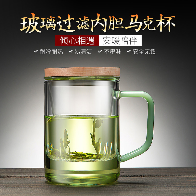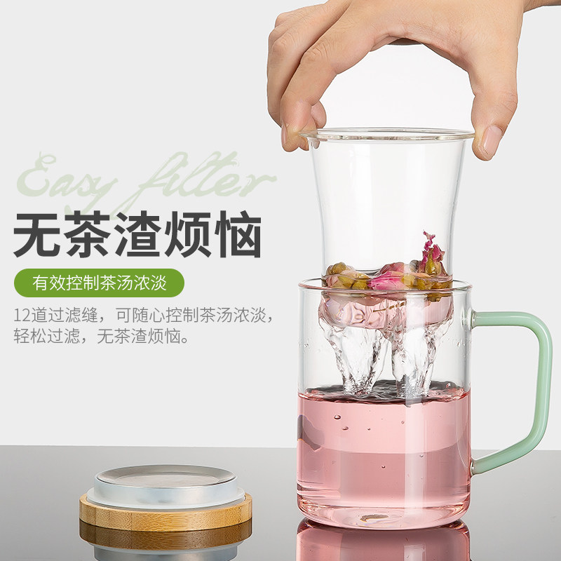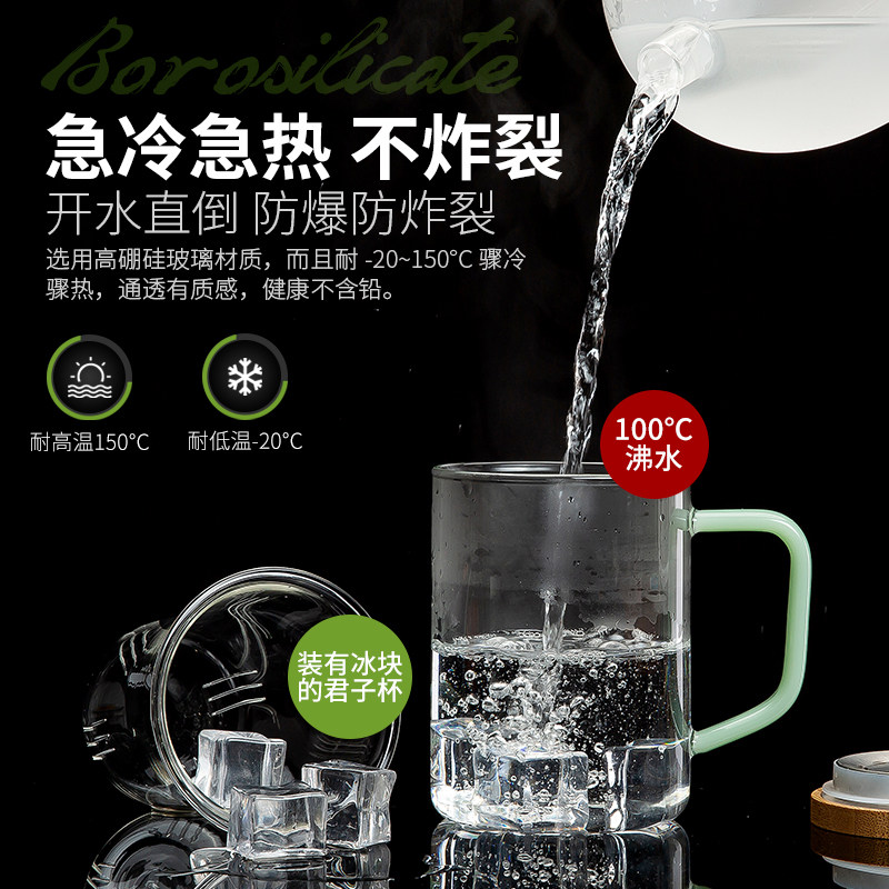 天猫晨茗旗舰店,过滤透明泡茶玻璃杯带盖,高硼硅玻璃 耐骤冷热 健康材质 破损包赔