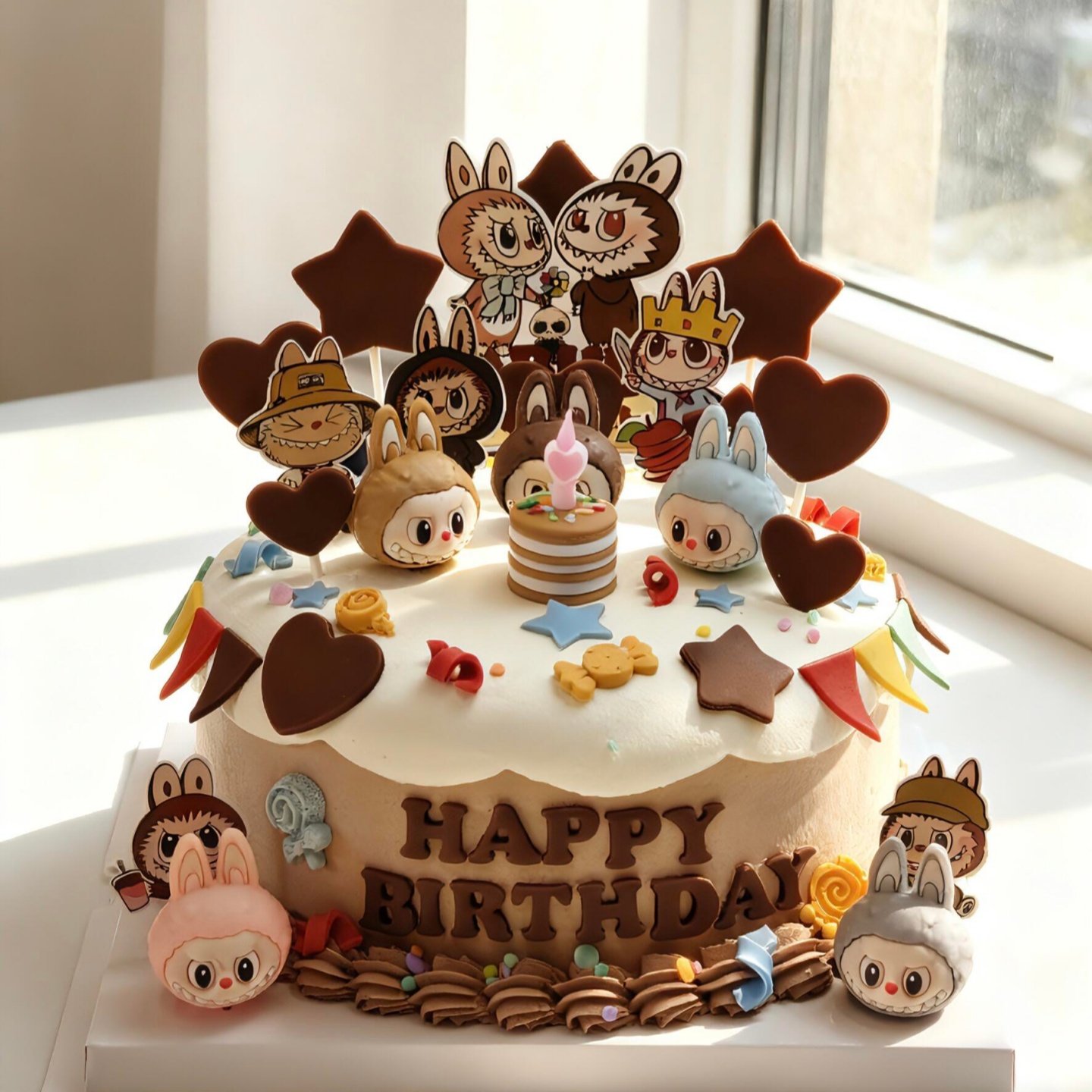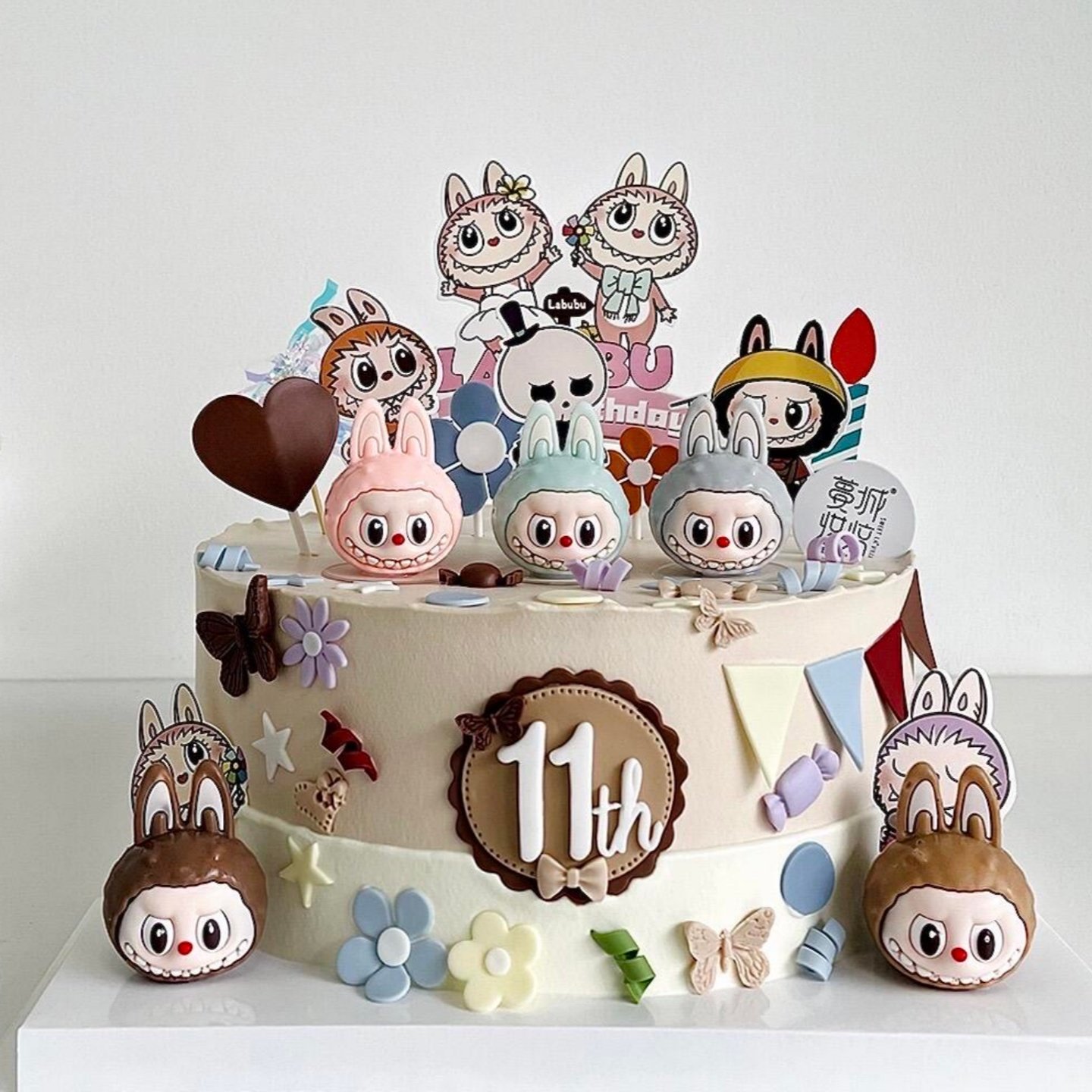 淘宝萌萌家蛋糕装饰批发,网红可爱拉布布头蛋糕装饰摆件可爱labubu男孩女孩生日派对装扮