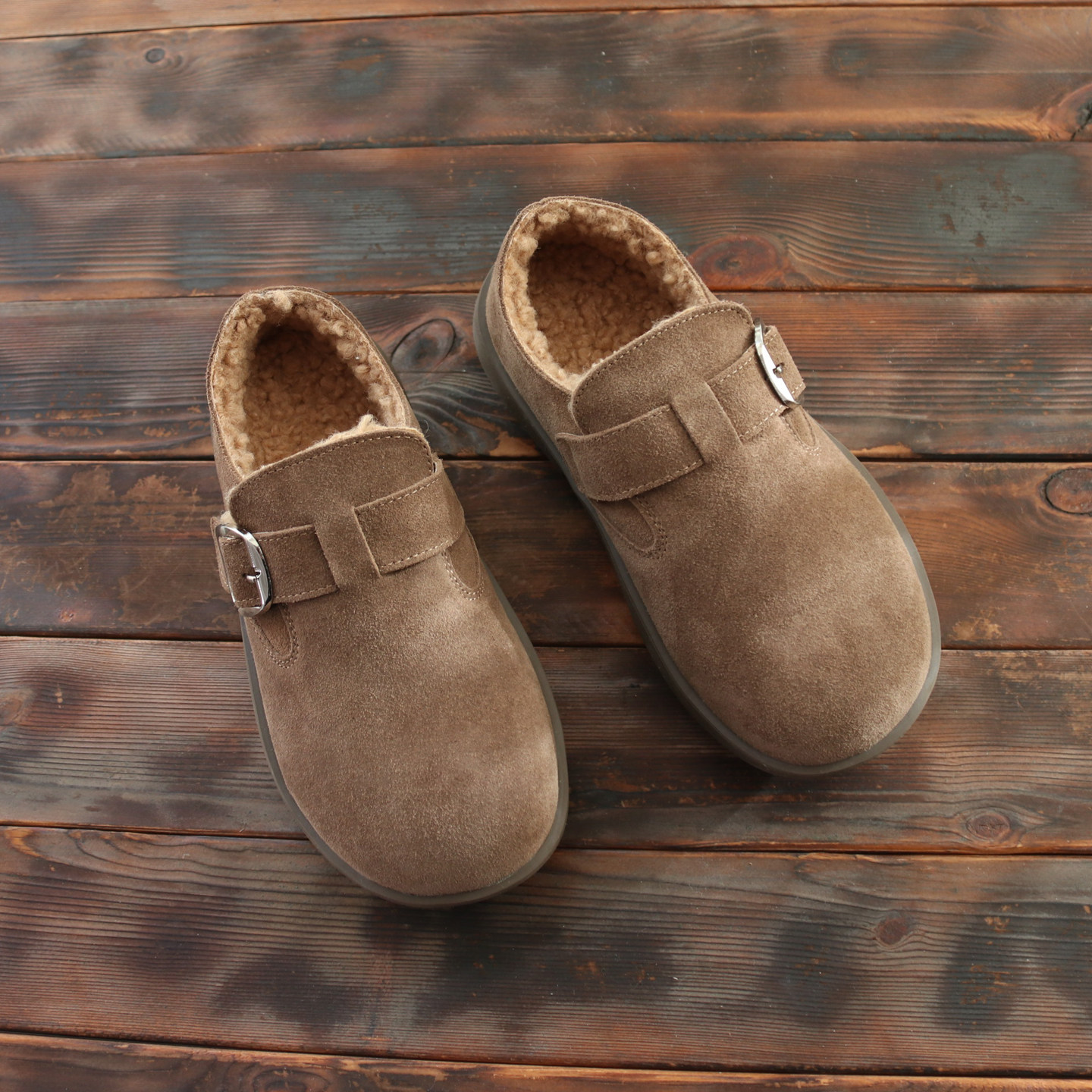 淘宝文森迪尔,牛皮复古棉鞋女厚底毛毛勃肯鞋女