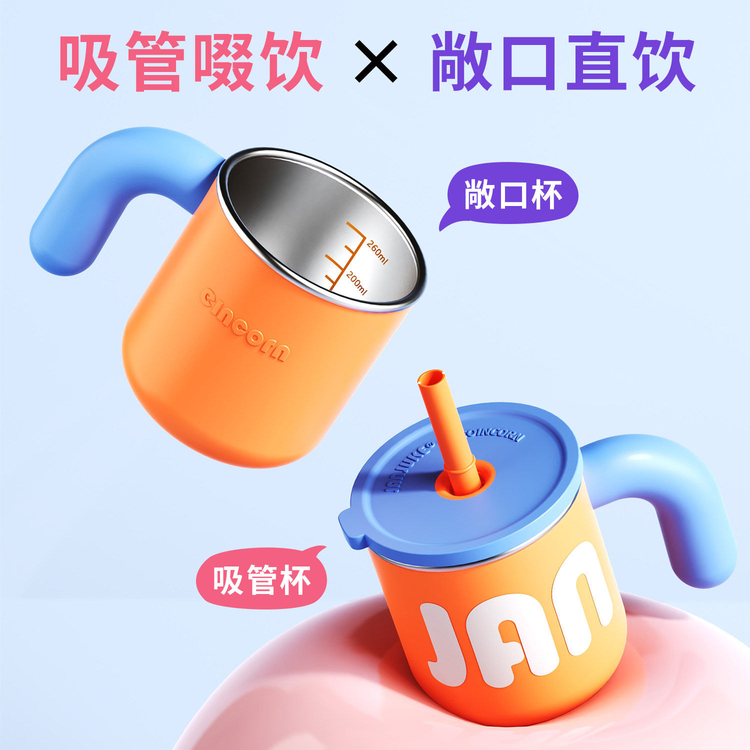 天猫简居客旗舰店,316不锈钢儿童防摔吸管牛奶杯,316不锈钢儿童防摔吸管牛奶杯