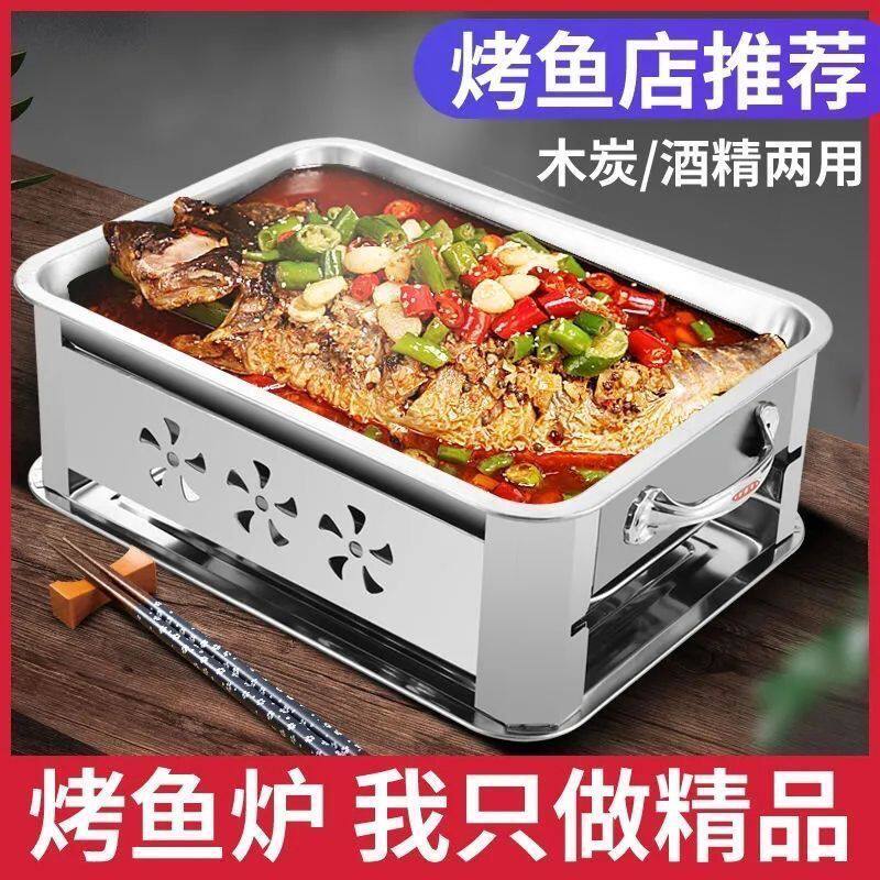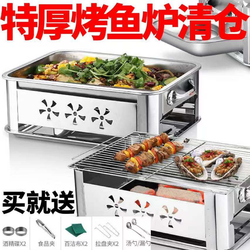 淘宝集兴电器,加厚不锈钢烤鱼炉海鲜鱼盘家用炉木炭长方形烤鱼专用商用烧烤炉架