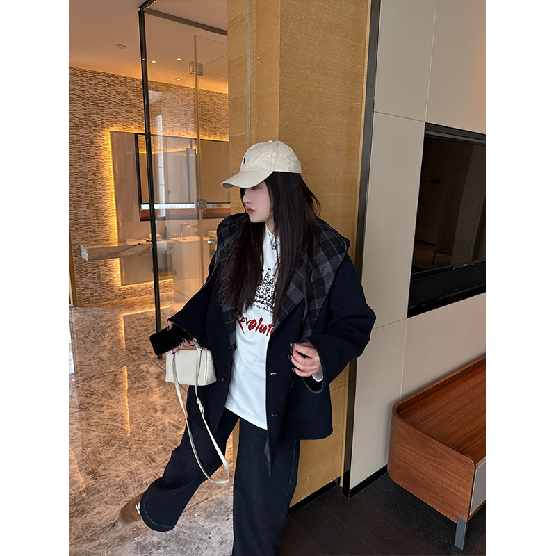 淘宝QBXX STUDIO 铅笔小鑫的店,铅笔小鑫大码女装两面穿 经典格纹 保暖高品质羊绒外套显瘦