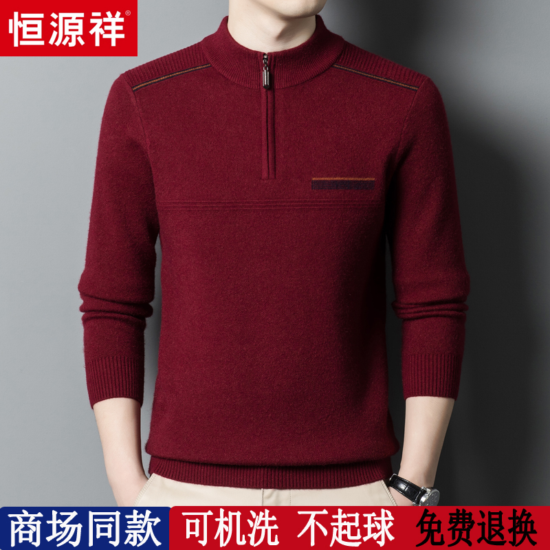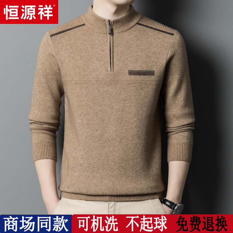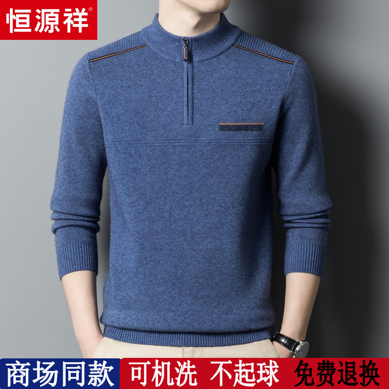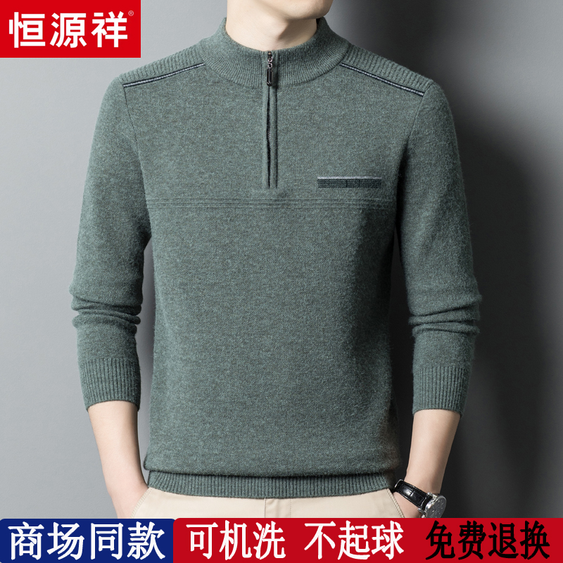 淘宝恒源祥彩羊奕辰服饰,恒源祥半高领拉链男士加厚羊毛衫