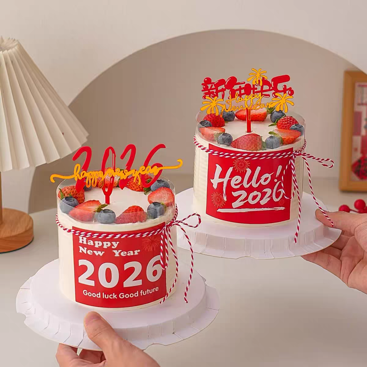 淘宝果果酱烘焙坊,马年元旦跨年hello2026新年快乐贴纸蛋糕装饰亚克力甜品装扮插牌