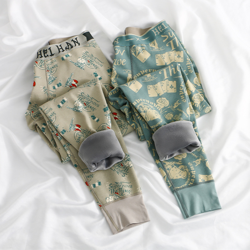淘宝正品内裤袜子工厂店,男士保暖裤男生秋冬季秋裤印花