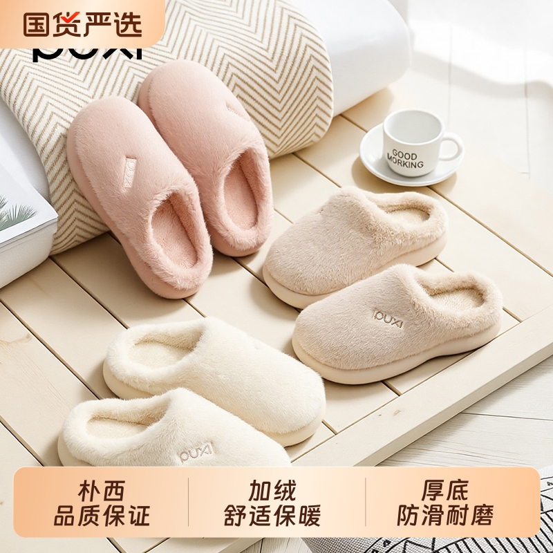 天猫1688官方工厂,朴西棉拖鞋女士2025新款室内家居厚底防滑加绒保暖毛绒棉拖鞋男士
