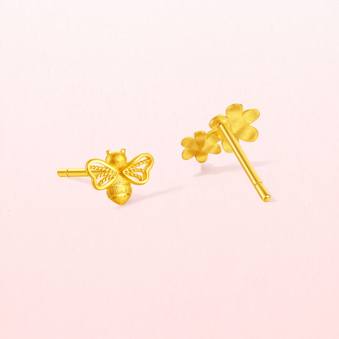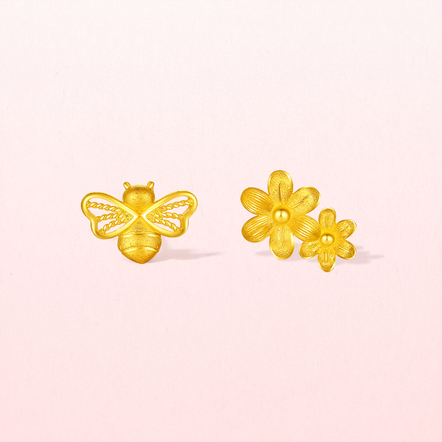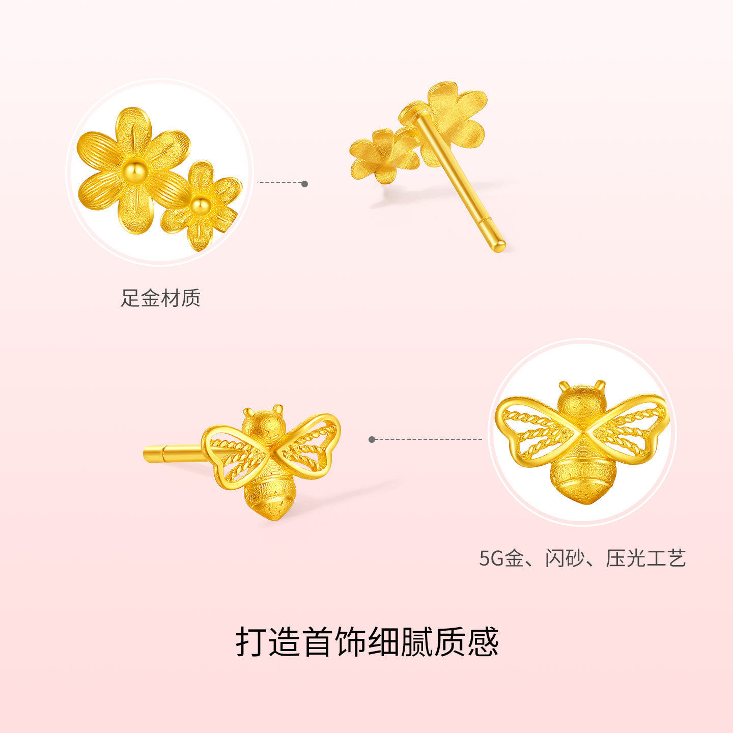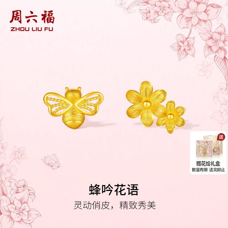 天猫周六福旗舰店,周六福黄金5G足金耳饰耳钉计价蜂吟花语田园系列女友节日礼物