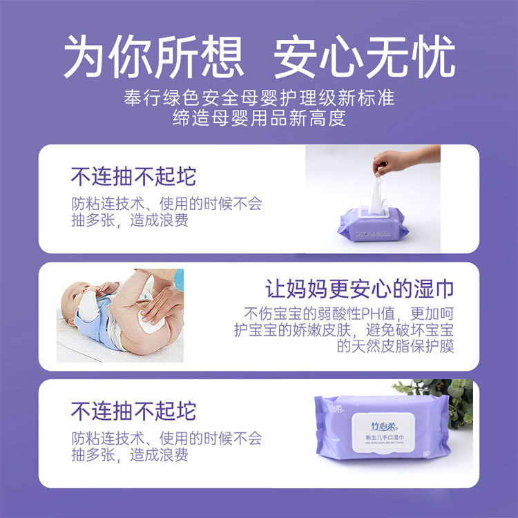竹心柔婴儿湿巾加厚非德佑加大带盖宝宝湿巾手口专用新生80抽1包