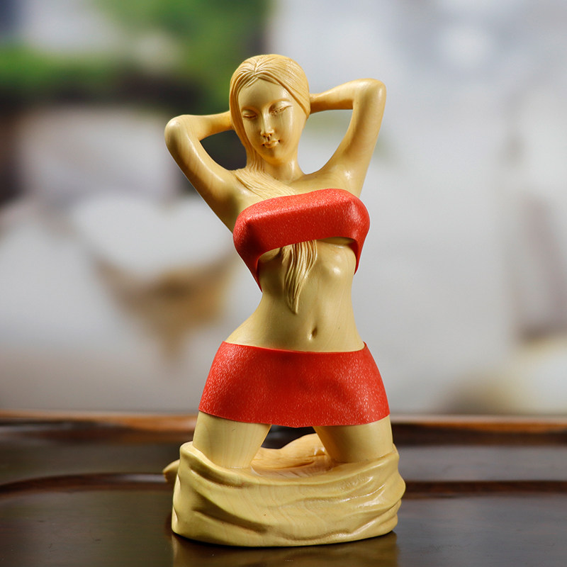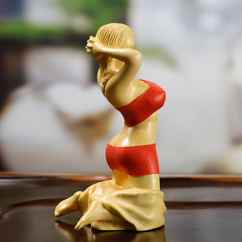 淘宝龙盛木雕,黄杨木雕美女手工艺礼品人物摆件女