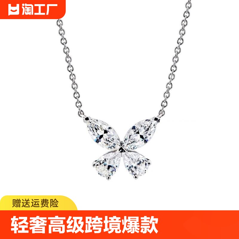 天猫天天特卖工厂店,纯银S925超闪爆闪网红蝴蝶项链锁骨链轻奢高级跨境爆款吊坠夏定制