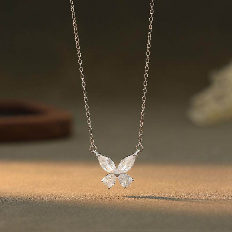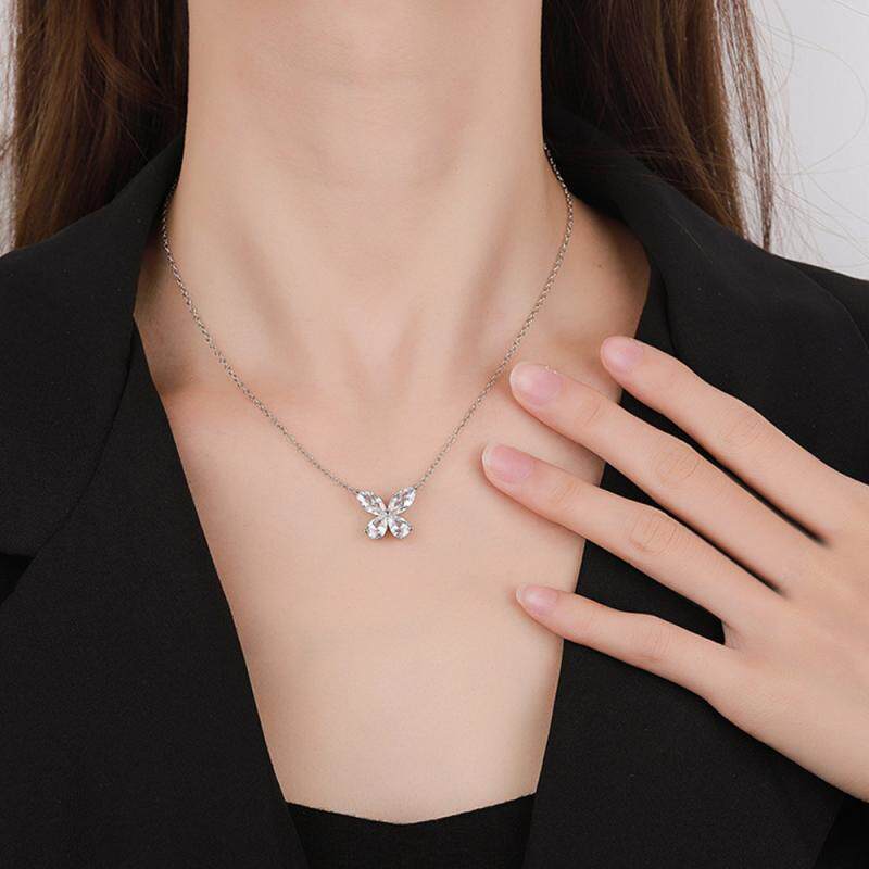 纯银S925超闪爆闪网红蝴蝶项链锁骨链轻奢高级跨境爆款吊坠夏定制