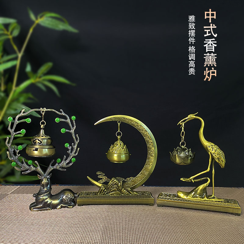 淘宝盛疆优品,福鹿天鹅香薰炉吊炉镂空香插檀香一路连升家用室内香炉中式摆件