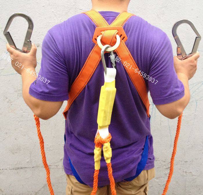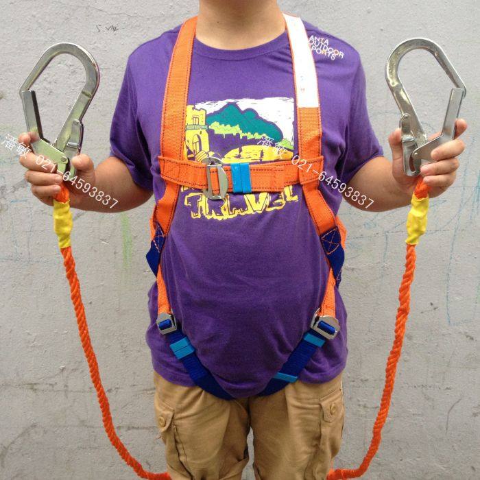 淘宝伟业工厂直销,五点欧式 带缓冲 安全带高空作业 工地安全绳 双大钩 劳保防护型