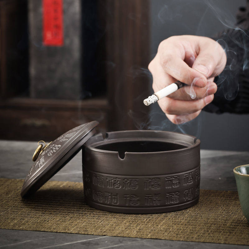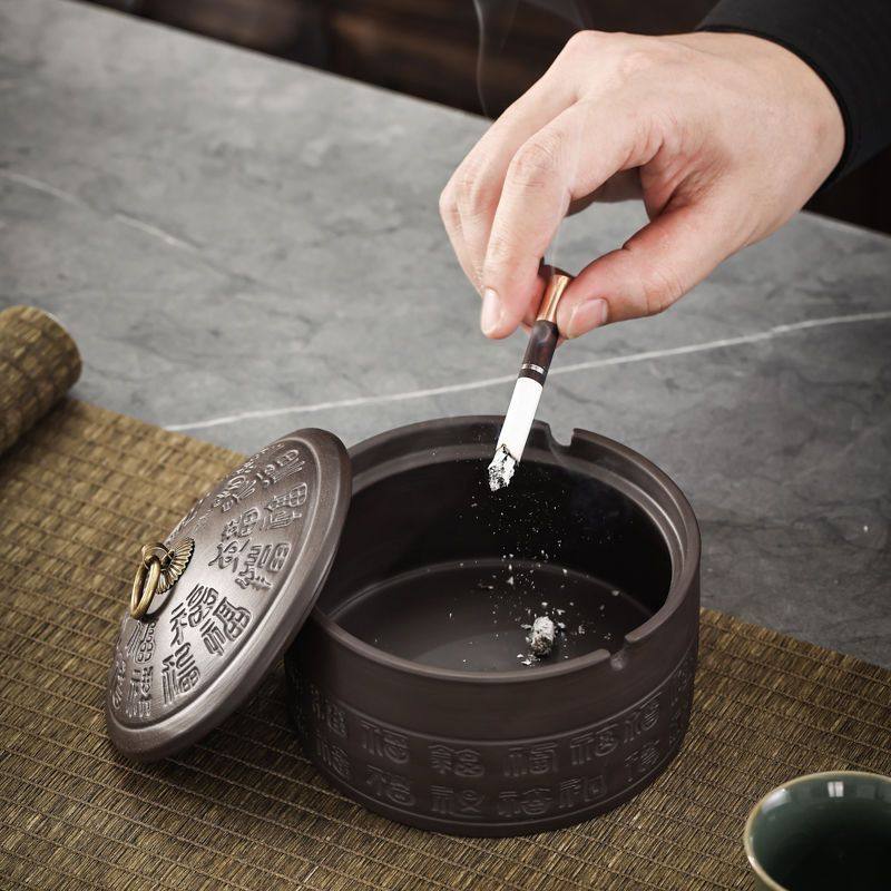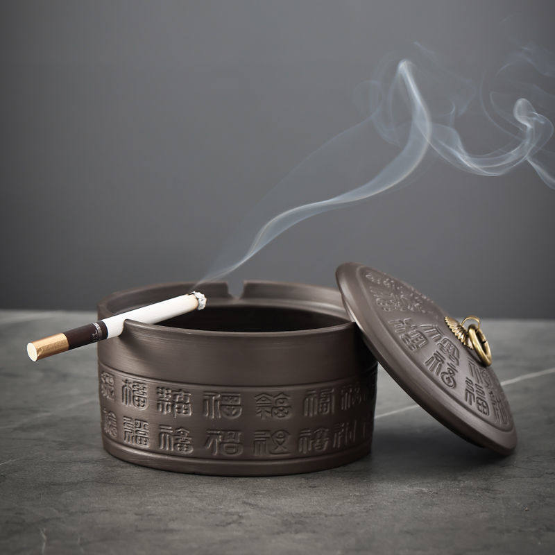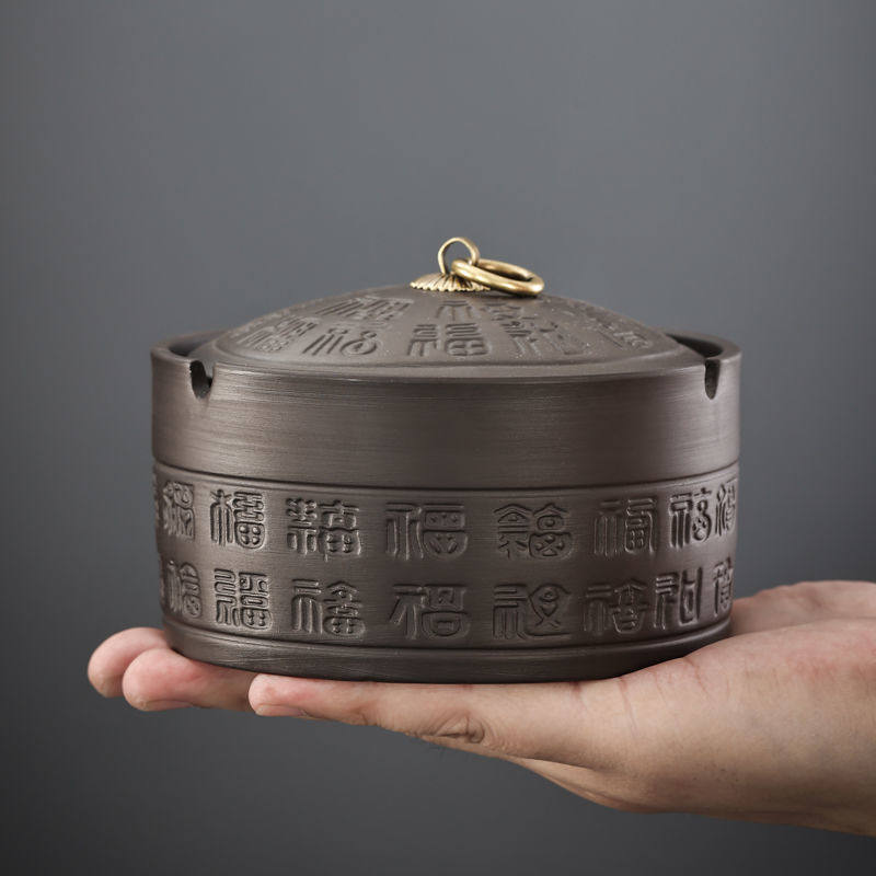 淘宝坚持访问我的神,高档紫砂带盖创意烟灰缸