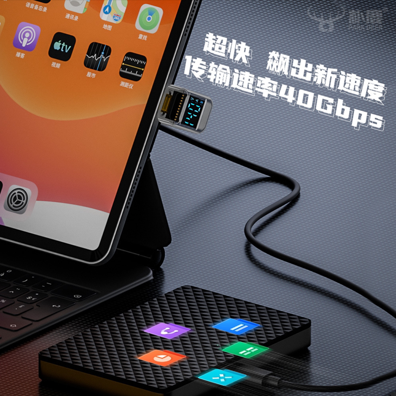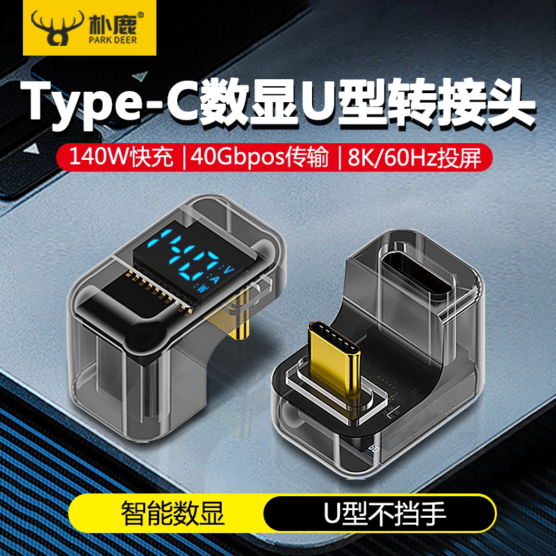 数显TypeC转C转接头140W高速USB雷电4直角弯头90度U型数据线电源线充电延长转换器插头PD快充车载8K/60Hz高清