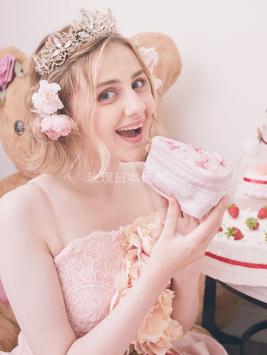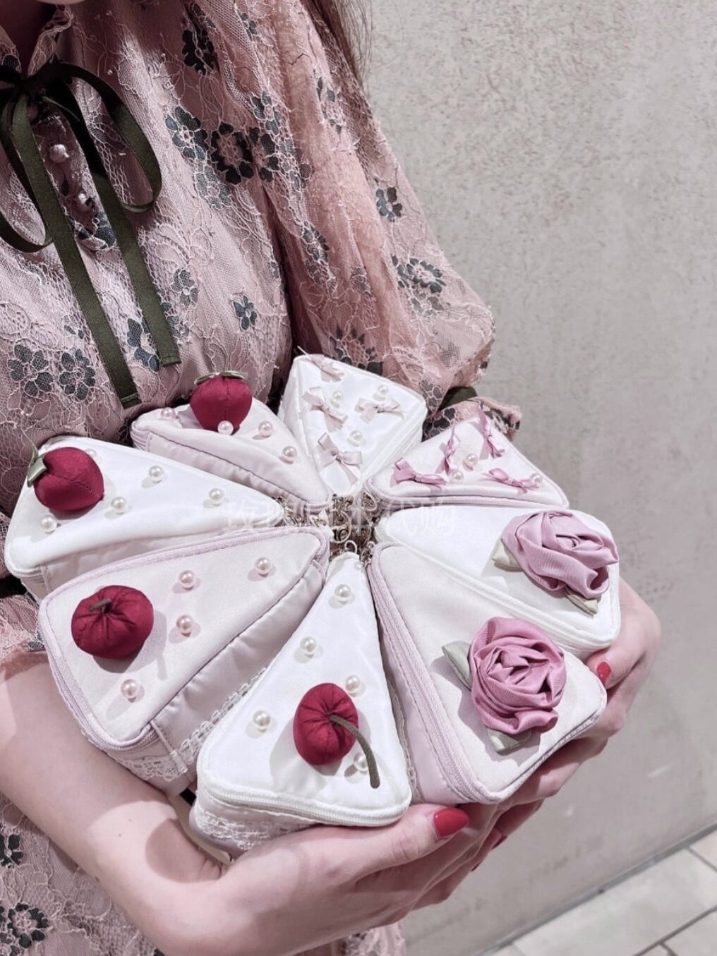 淘宝玫瑰日本代购,玫瑰日代 现货 Maison de Fleur 玫瑰花蝴蝶结樱桃草莓蛋糕化妆包