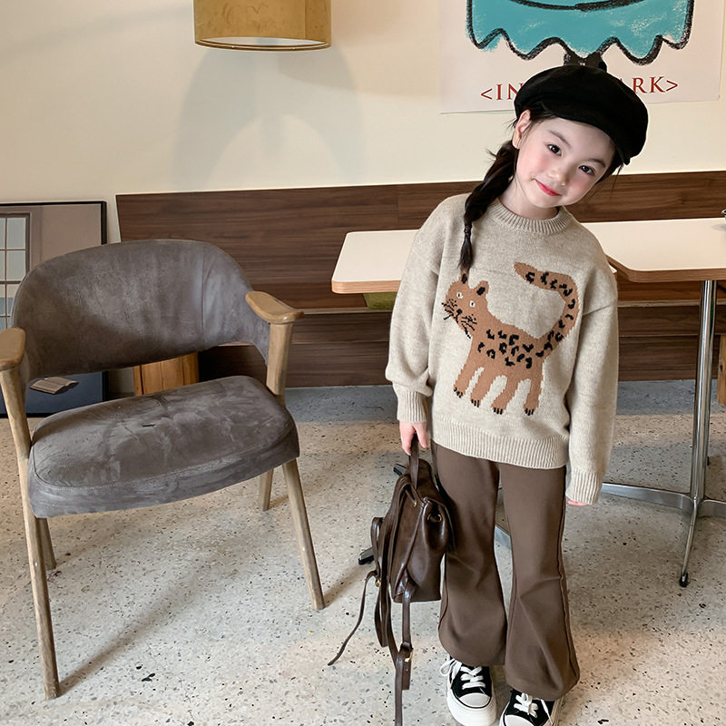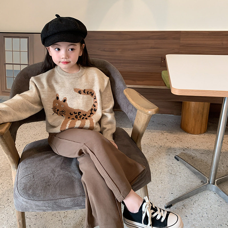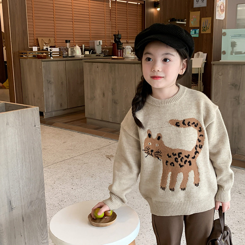 淘宝莱迪小狐狸童装店,艾摩贝贝2023秋冬新款女童韩版卡通毛衣儿童圆领套头衫针织上衣潮