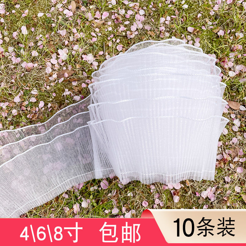 七夕情人节烘焙压皱网纱生日蛋糕装饰围边蕾丝网红装扮波浪纱丝带