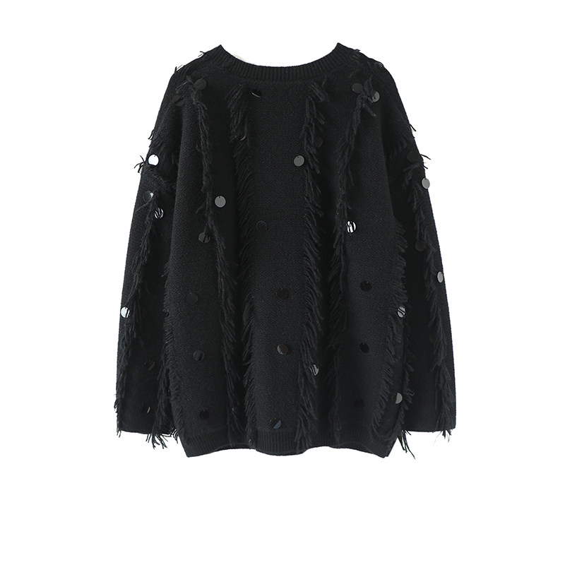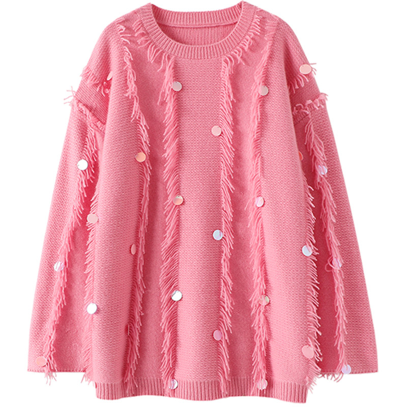 袅袅仙美!加厚手工亮片100%山羊绒衫女圆领纯羊绒毛衣毛絮宽松冬