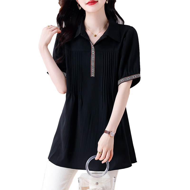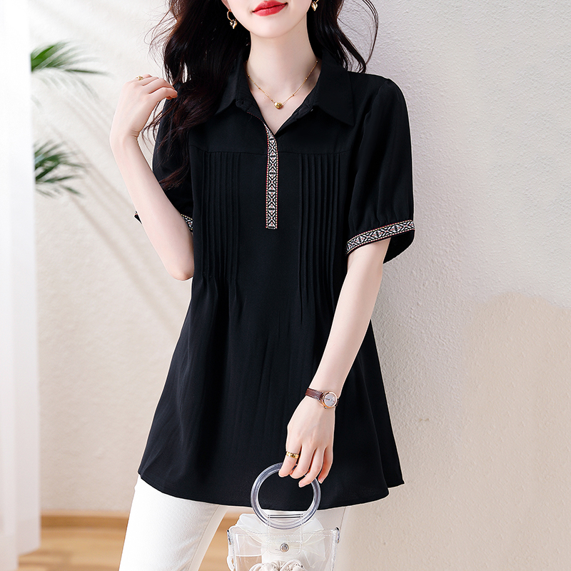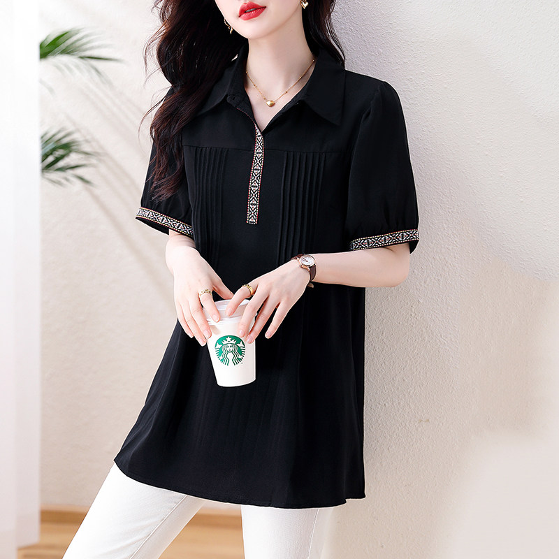 九月陌墨中袖雪纺衫女短袖2023新款夏季胖mm大码女装时尚衬衫上衣