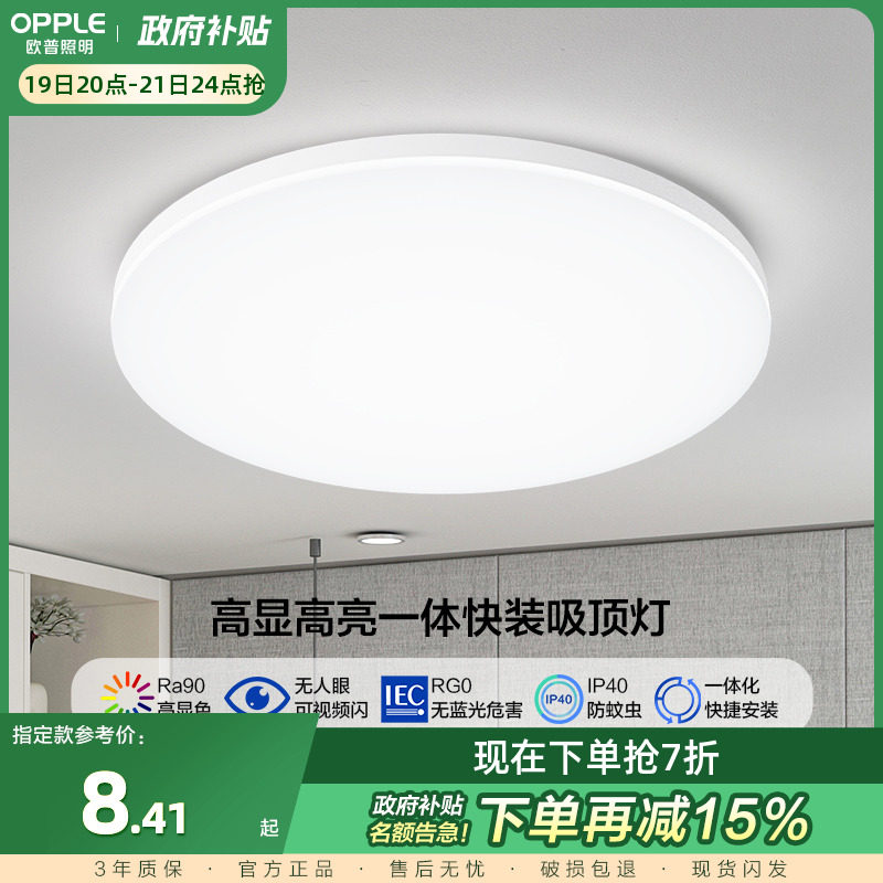 天猫欧普照明官方旗舰店,圆形led卧室阳台灯欧普照明,限量抢9.9阳台灯!清新蓝色简约卧室灯!