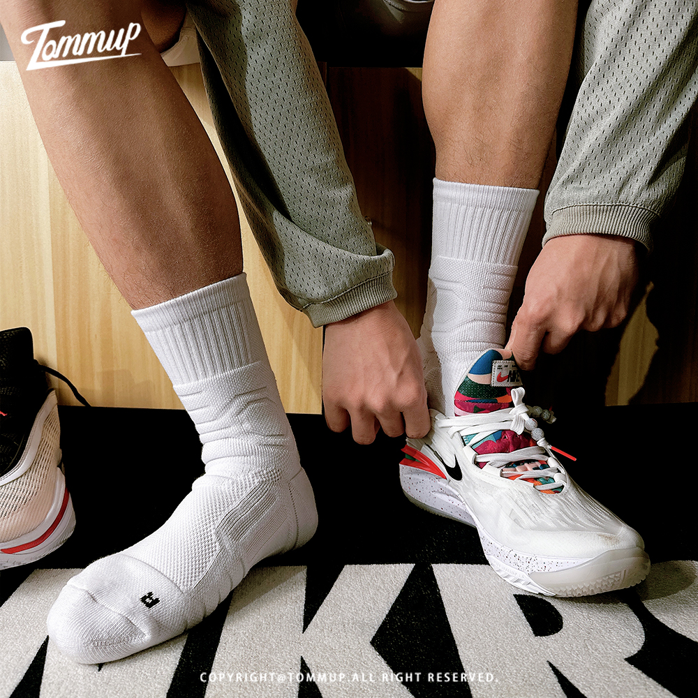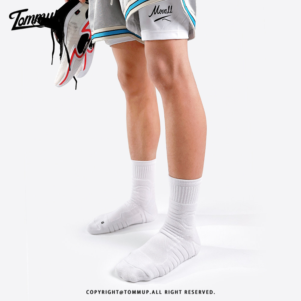 淘宝汤姆向上tommup,纯白色实战篮球袜毛巾底加厚美式