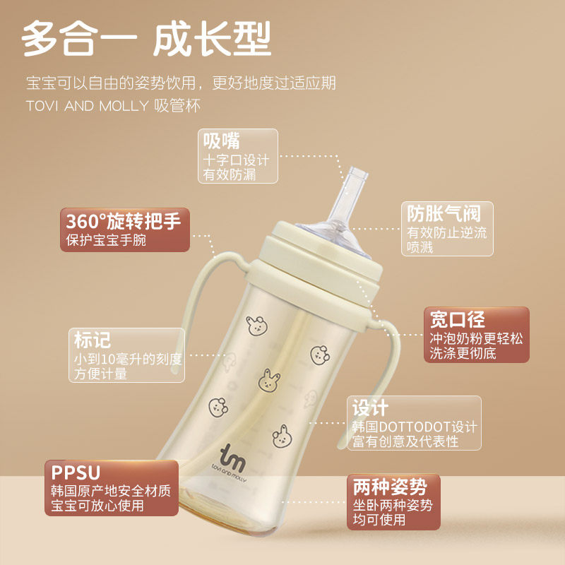 天猫tOVIanDmOLLY旗舰店,韩国儿童吸管杯奶瓶学饮杯ppsu,韩国原装进口 不喷不漏防胀气 PPSU材质安全