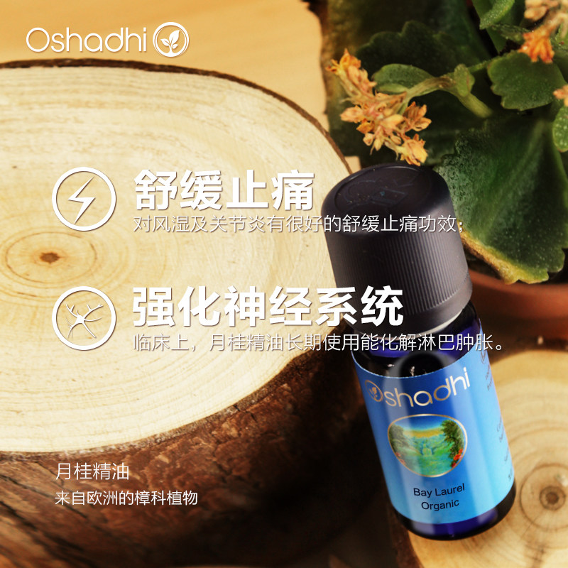oshadhi德国O家有机月桂单方精油香薰精油呵护神经提振精神化痰