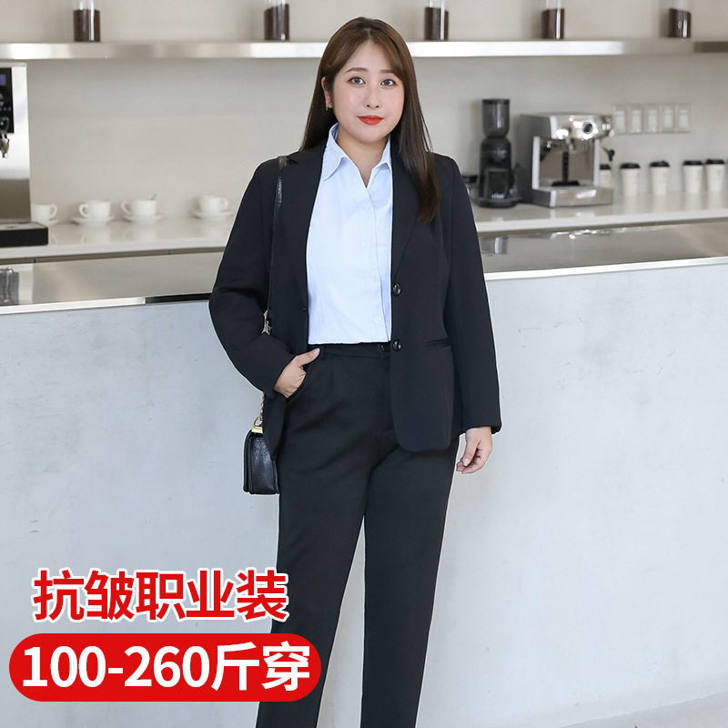 240斤大码银行职业套装女胖mm正装西服工作服200商务西装外套西裤