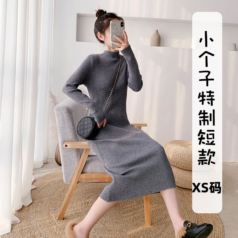 淘宝小公举小个子女装,145小个子穿搭150秋冬黑色内搭打底外穿修身针织连衣长裙女半高领